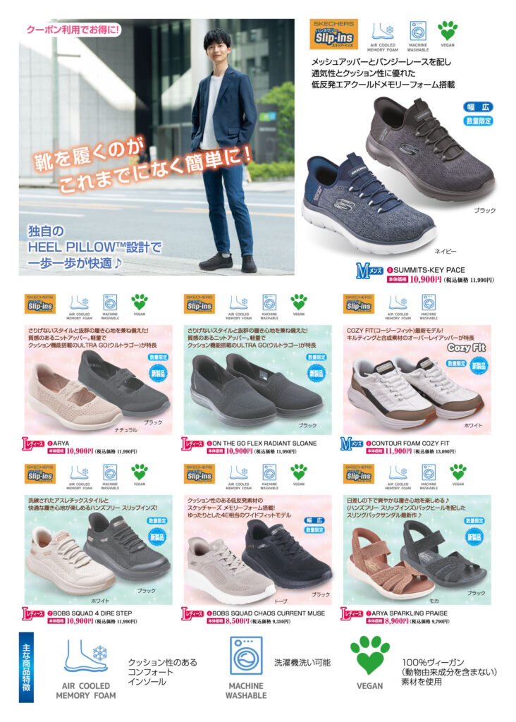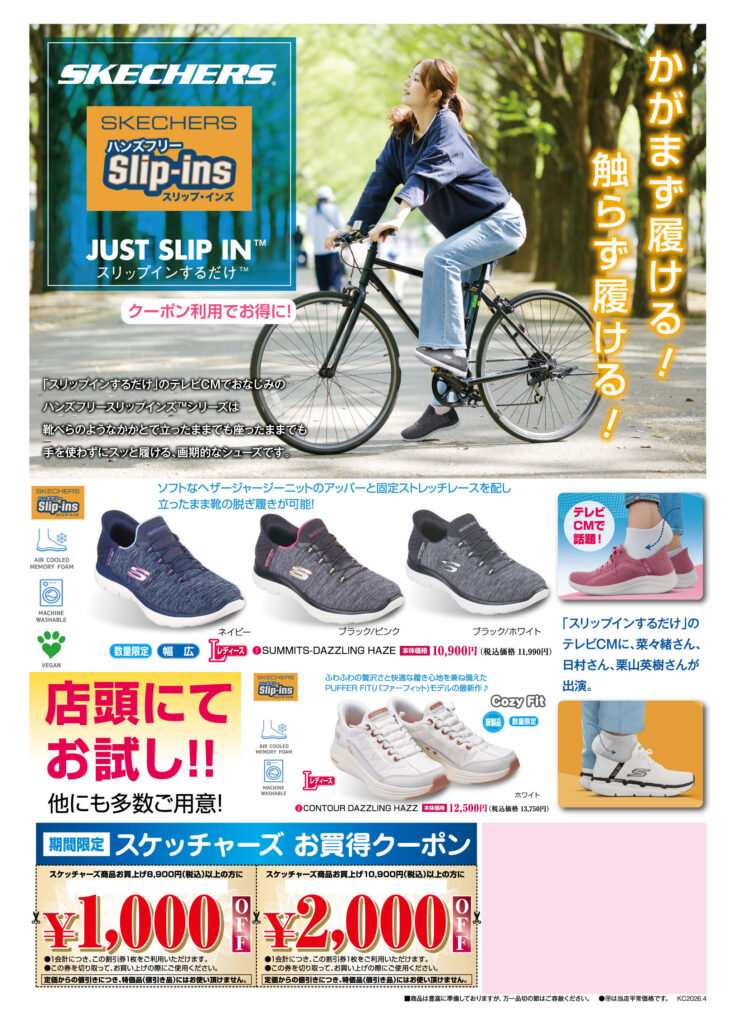 当日の折り込みチラシの「スケッチャーズお買得クーポン」をご利用いただくと